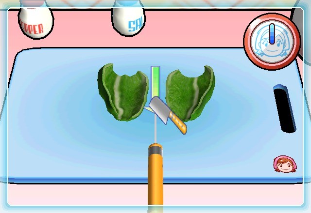 ![]() Plate-forme : Wii Date de sortie : 10 Mai 2007 Editeur : Développeur : Genre : Party-Game Multijoueur : Oui Jouable via Internet : Non Test par Nic0077/10 Cooking Mama connait une adaptation sur Wii. Cookwiing MamaLe phénomène Cooking Mama arrive enfin sur Wii. Dans ce titre, vous allez devoir vous servir des spécificités de la console pour produire divers plats ! Au départ une quinzaine d'entre eux est disponible pour un total de cinquante cinq recette, plus d'autres mixtures de différents mets (trois cents ingrédients sont totalisés). Le jeu est assez simple d'utilisation et chaque étape du plat est symbolisé par un mini-jeu. La Wiimote sera votre instrument de travail et vous allez devoir hacher, touiller, mélanger, frire, couper des aliments avec entrain et en écoutant les indications fournies par la Mama. Autant le dire, le jeu est encore plus dynamique que sur DS, puisqu'il est nécessaire d'effectuer les dits mouvements. Par contre la précision est également moins sure du coup, mais rien de grave. Le jeu est ainsi décomposé en différents modes. On compte bien sur le mode Cuisine qui vous apprendra à mitonner les plats de dix pays (dont la France heureusement, mais aussi l'Italie, l'Espagne, le Japon, l'Allemagne, les Etats Unis ou bien la Chine), mais aussi le Défi (où il faut executer la recette le plus rapidement possible) et Amis (où vous affronter l'ordinateur dans un face à face, ou bien un second joueur en écran splitté). Rien n'a changé ?Meme si l'essentiel est ailleurs, la mise en scène est strictement identique à la version DS. Graphiquement c'est donc très léger pour une Wii, et seules quelques éléments ont été revues à la hausse sur la console de salon de Nintendo. Néanmoins le titre a un certain cachet, c'est déjà ça. Toutefois l'environnement de travail reste étrangement propre durant la partie, le "réalisme" en prend un coup. Cooking Mama est de plus, très facile en prendre en main. Il ne faut que quelques minutes pour en saisir ses subtilités. Le gameplay est bien sur très arcade et devrait amuser un moment, surtout dans le mode deux joueurs, bien intégré. Nonobstant, le jeu reste un peu court à boucler, sauf si vous souhaitez concevoir tous les plats du titre. Localisé en Français, le titre propose enfin, de jolis musiques et une voix off très entrainante. A signaler que le jeu est compatible 480p. VERDICT-Cooking Mama est un titre original et globalement très accessible. Cela sera également l'occasion d'en apprendre plus sur la cuisine, tout en s'amusant. |