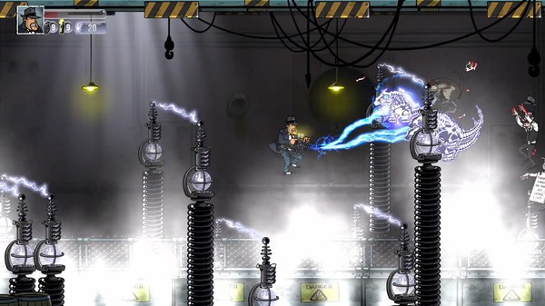 Editeur : Développeur : Genre : Action Multijoueur : Oui Jouable via Internet : Non Test par Nic0077.5/10 Bienvenue en banlieue de Voyouville dans les années 1920, à l’apogée de la prohibition. Développé par un jeune studio belge, le jeu Guns, Gore & Cannoli revient de loin. En effet, après une campagne de financement infructueuse sur Kickstater, le titre a été repéré au Casual Connect Amsterdam où il a décroché la récompense du meilleur jeu PC. Le titre met en scène Vinnie Cannoli et son entourage de mafieux, dans la cité fictive de Voyouville en 1925. En pleine période de la prohibition, les gangsters devront faire face à deux menaces. Non seulement le Gang des Requins, un autre clan mafieux, mais aussi à des ... zombies (!), qui viennent mystérieusement d'arriver en ville. Le système de progression se montre assez complet et la difficulté parfois complexe, heureusement plusieurs continues sont présents pour retenter sa chance. Dans les faits, Guns, Gore & Cannoli rappelle l'antique Metal Slug, mais avec une toute autre ambiance. Outre votre mitraillette, vous pourrez laisser parler les poings, donner des coups de pieds ou encore lancer des grenades. Bien sur, ce genre de production apparaîtra très répétitif chez une certaine tranche de joueurs, ils n'auront pas spécialement tort, malgré la diversité des ennemis et un humour omniprésent. Cette version PC se montre globalement bien réalisée, avec une charmante réalisation 2D qui s'inspire de la bande dessinée. La reproduction des années folles s'avère très concluante, et l'animation s'avère assez coulée, ne ralentissant jamais malgré les hordes d'ennemis qui jaillissent l'écran. 2D oblige, le clavier de l'ordinateur se montrera assez réactif pour jouer, même si évidemment on préfèrera l'utilisation d'une bonne vieille manette. Côté son, les musiques restent dans le ton et les bruitages sont très classiques. La durée de vie s'avère plutôt honorable. On retrouve un total de 12 chapitres et une campagne jouable à quatre en coopération sur le même ordinateur, soit environ six heures de jeu. Bon point, le titre a été localisé en français (les doublages sont en anglais). A noter que des versions consoles (PS4, X1, Wii U) sont prévues pour l'été. VERDICT-Disponible pour 9,99€, Guns, Gore & Cannoli est un jeu d'action à l'ancienne qui mérite l'attention. Bien réalisée et plein d'entrain, cette production indépendante réjouira les fans du genre, malgré une certaine répétition des tâches. Mais c'est aussi propre à ce style de jeu. |