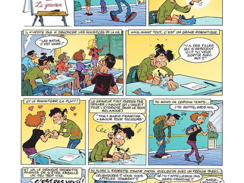 ![]() Plate-forme : Bande Dessinée Date de sortie : 21 Août 2019 Editeur : Développeur : Genre : Bande dessinée Multijoueur : Non Jouable via Internet : Non Test par Nic0078/10 Scénario : Erroc et Sti Comme à l'accoutumée, nous retrouvons les aventures du prof d’histoire débutant, du prof de gym sur-vitaminé, de la prof de français sexy, du prof de philo blasé et de la prof d’anglais peau de vache. Eh bien sur l'éternel Thierry Boulard est toujours présent : Totalement irrécupérable, ce dernier semble littéralement abonné au banc de l'école Fanfaron, passant son temps en colle, redoublant à vie, et victime de notes pour le moins médiocres. Il est vrai que les élèves n'ont pas vraiment envie de vraiment travailler dans un pareil lycée. Et pourtant, l'heure de la rentrée a sonné, cette année s'annonce particulièrement délicate car l'établissement va devoir gérer l'arrivée du ministre de l'Éducation nationale. Évidemment, avoir Boulard en tête d'affiche ne serait pas vraiment un avantage, aussi les élèves "rebelles" sont gentiment refoulés à l'entrée du lycée (comme en boîte) et une tenue correcte est exigée pour pouvoir passer. VERDICT-Un volume des Profs bien conçu, qui alterne humour et faits de sociétés. Oh bien sur Boulard, Gladys et les autres sont toujours là pour vous divertir et la série sait plutôt bien se renouveler au fil des années. |