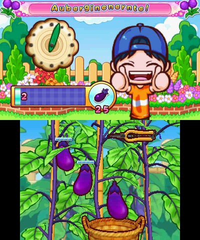 Apparu pour la première fois en 2009 sur Nintendo DS, Gardening Mama faisait évoluer la série d'Office Create, obligeant le personnage à quitter ses fourneaux pour partir vers de nouveaux horizons, à savoir le jardinage. Une suite arrive à présent sur 3DS avec à nouveau un très long retard (le jeu est sorti en septembre 2013 au Japon !). Dans ce titre, vous allez devoir faire pousser plus de 50 sortes de plantes dans votre jardin, puis distribuer vos récoltes aux six magasins gérés par vos amis animaux. Au gré de la progression, vous débloquerez de nouvelles variétés de graines, bulbes et arbres, et vous pourrez même aider vos amis à développer leur activité. Lorsqu'un magasin monte en niveau, vous gagnez un bon d'achat permettant d'acquérir plus de 100 décorations possibles pour le jardin (clôture, fontaine, animaux domestiques, etc), sachant que certains articles seront également disponibles via SpotPass. La prise en main n'a pas vraiment changé depuis Cooking Mama, et chaque étape du jeu est symbolisé par un mini-jeu. Le stylet sera donc votre instrument de travail et vous allez devoir bêcher, creuser, planter, arroser, fertiliser, etc, avec entrain et en écoutant les indications fournies par la Mama (le jeu est localisé en Français heureusement). Une fois "l'aventure" bouclée, vous pourrez relever des mini-défis qui permettront de gagner en précision et d'obtenir un rang supérieur dans le classement des scores.