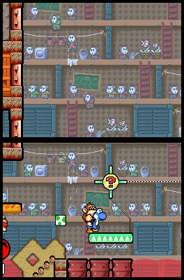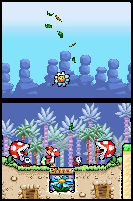 Chaque héros donne à Yoshi des pouvoirs spécifiques. Bébé Mario permet au dinosaure de courir beaucoup plus rapidement, Bébé Peach peut grace à son ombrelle faire flotter le personnage au dessus des nuages et atteindre des endroits sinon inaccessibles. Quant à Bébé Donkey Kong, hé bien il est toujours aussi actif et n'hésite pas à donner de sa personne pour affronter les ennemis. En outre, un autre personnage arrivera au cours de la partie, Bébé Wario. Grâce à son aimant, vous pourrez vous accrocher aux plate-formes. Autre nouveauté, le double écran qui permet d'appréhender l'action de haut en bas et ainsi d'anticiper ce qui attend Yoshi.